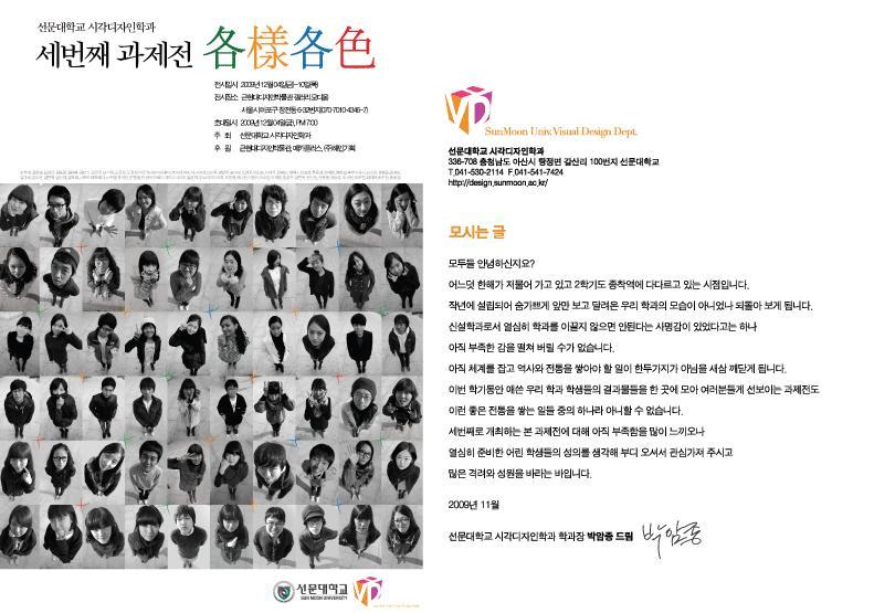 다음의 초대장에서 보시는 바와 같이 저희 시각디자인학과에서는 2009-2학기를 마감하면서 세번째 과제전을